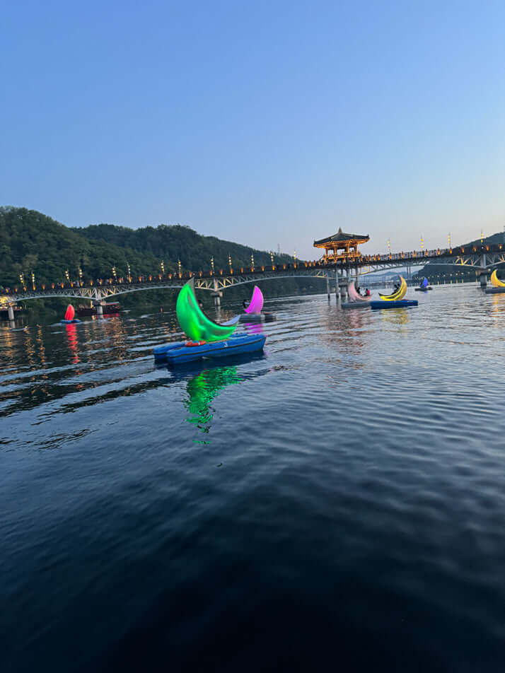 ムーンボートに乗って湖面を漂う