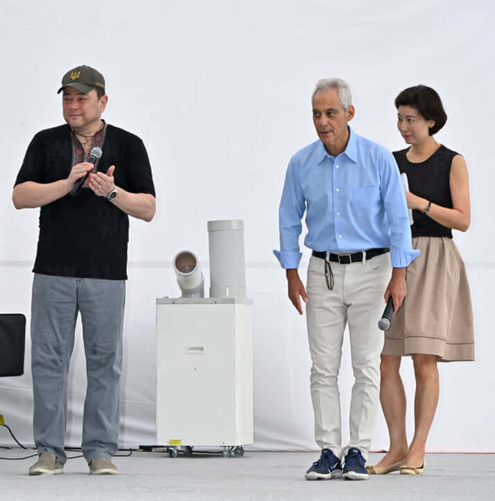 5枚目/31枚中 「兄は手榴弾で殺された」 来日したウクライナ人俳優が日本で訴えた最前線の危機 国際2024年07月29日 コルスンスキー大使(左)とエマニュエル大使はともに日本の支援に感謝の意を述べた