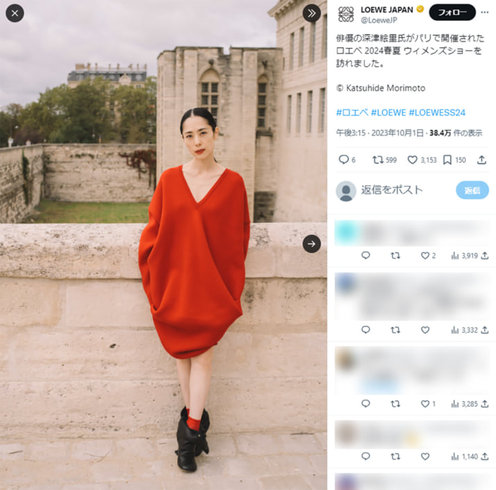 3枚目/10枚中 「戻ってきちゃいました!」 織田裕二「世界陸上」にやっぱり復帰の裏側 視聴率低下、“織田ロス”でTBSは「必要不可欠」と判断か 芸能2024年10月12日 深津絵里(ロエベ ジャパンのXより) 0