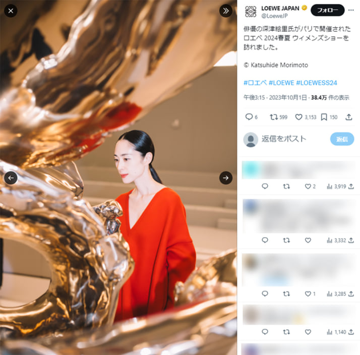 4枚目/10枚中 「戻ってきちゃいました!」 織田裕二「世界陸上」にやっぱり復帰の裏側 視聴率低下、“織田ロス”でTBSは「必要不可欠」と判断か 芸能2024年10月12日 深津絵里(ロエベ ジャパンのXより) 0