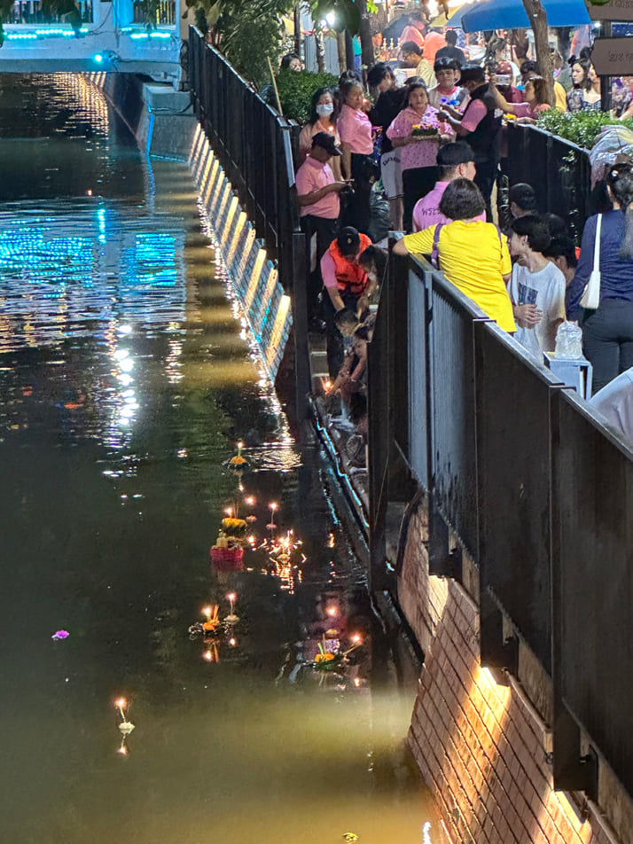 チャオプラヤー川に灯ろうを流す様子(撮影・澤野綾香)