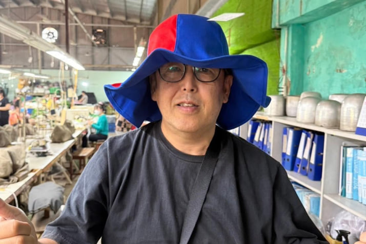 帽子工場「ビナスターハット」での筆者(著者撮影)