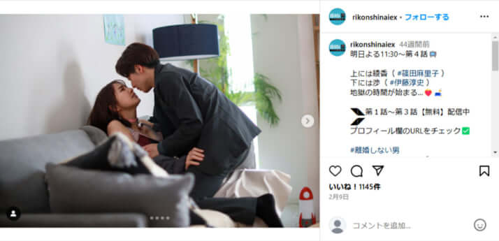 4枚目/9枚中 「ふてほど」を押さえてまさかの「見逃し配信」年間トップ! 事務所倒産の「お騒がせ女優」が不倫を演じた“ドロドロドラマ”とは? 芸能2024年12月23日 「離婚しない男―サレ夫と悪嫁の騙し愛―」公式Instagramより 0