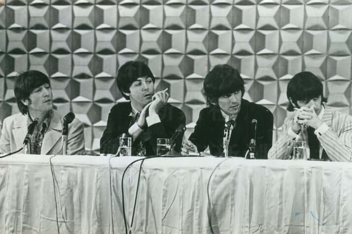 2枚目/6枚中 “マトリ”の事務所を取り囲んだファンが「イエスタデイ」を大合唱 ポール・マッカートニー「成田で大麻逮捕」秘話 芸能2025年01月05日 1966年6月にビートルズとして初来日し、ヒルトンホテルで会見 0