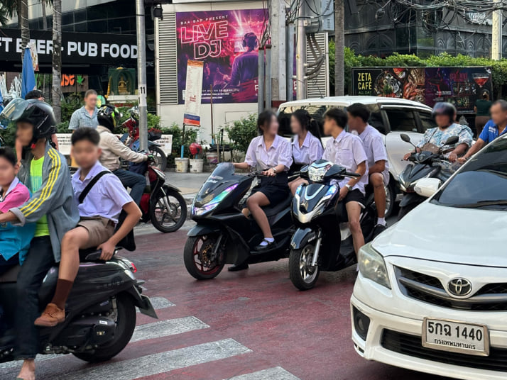 学生がノーヘルメットで運転(撮影・澤野綾香)
