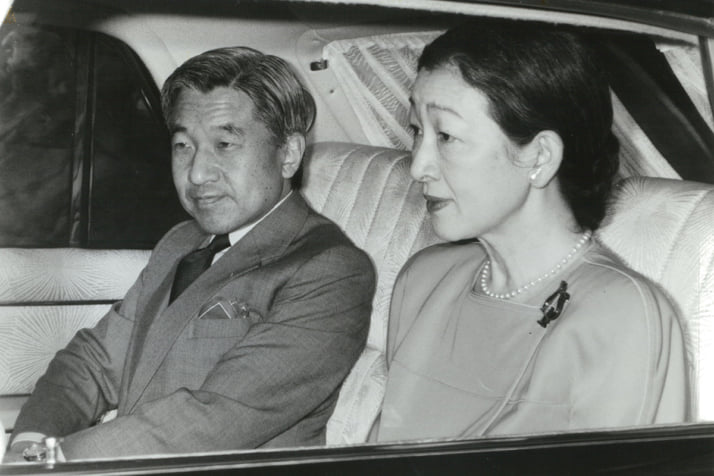 昭和天皇のお見舞いに皇居へ向かう皇太子ご夫妻(当時)