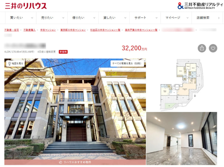 3枚目/17枚中 豪邸以外の「3億円マンション」も発見! フジ・日枝久氏が確立した「お台場不動産王国」の物件一覧 エンタメ2025年02月10日 日枝久氏が所有するマンション(三井のリハウスHPより) 0