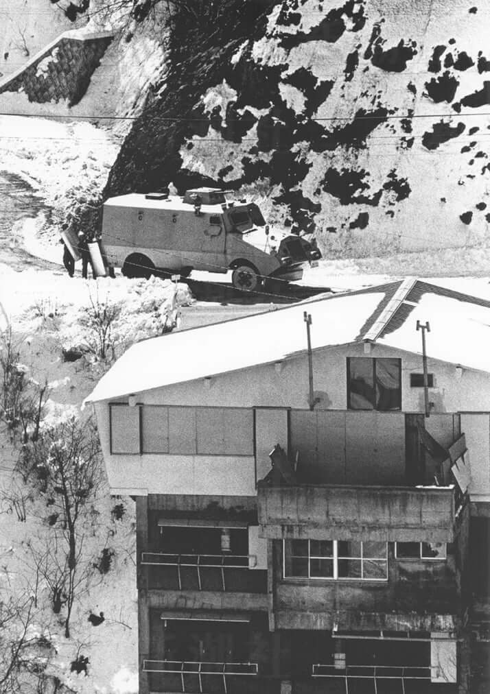 特型警備車で山荘に接近する警察