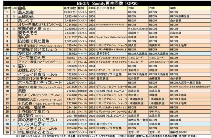 2枚目/21枚中 BEGINが生んだ“世界で最も簡単な弾き語りができる楽器”や新音楽ジャンル『マルシャ ショーラ』とは? 明石家さんまの“無茶ぶり”も懐古 芸能2025年02月23日 BEGIN Spotify再生回数TOP30 0