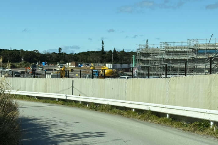 6枚目/7枚中 観光閑散期「冬の沖縄」に変化の兆し 「プロ野球キャンプ」に続く期待のキラーコンテンツとは ビジネス2025年02月25日 道路から見える建設中のジャングリア沖縄(近づいての撮影は禁止の看板があった) 0