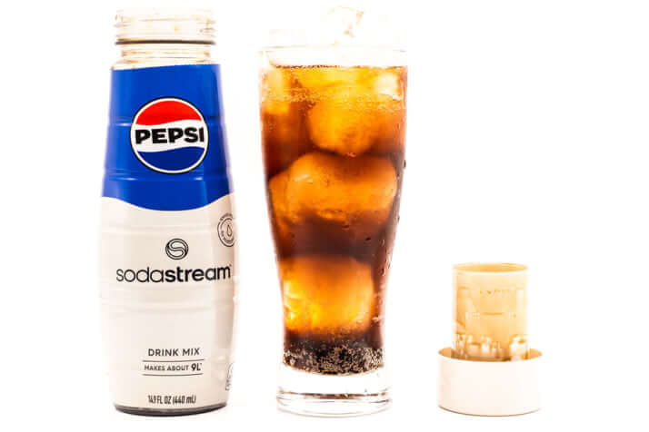 また、ソーダストリームで作ることを基本設計にしているためか、シロップ容器のキャップはひっくり返すと液体洗剤のキャップのような計量カップになります。このキャップの目盛りの通りシロップを入れれば理想的な濃さのペプシコーラが完成するので、この機能が日本のものにもあれば良かったなと思います。