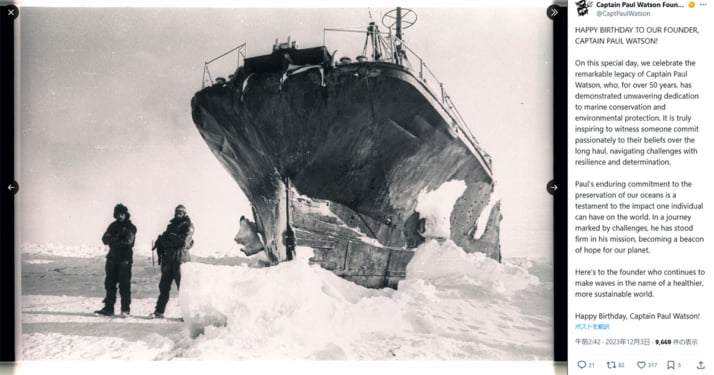 4枚目/6枚中 「国民の99%が興味ない」と辛辣な声も “名誉市民”に選ばれた「シー・シェパード創設者」にフランス国民はあきれ顔 国際2025年03月07日 「Captain Paul Watson Foundation」Xより 0