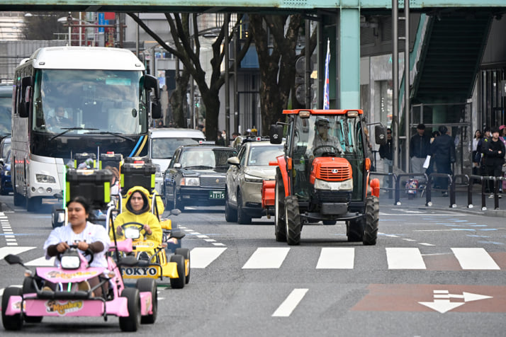 3枚目/13枚中 ポルシェの横をノロノロと…渋谷のど真ん中で「トラクターの大行進」が! 農家たちが訴えた厳しいリアル 「稲作農家の所得は時給わずか10円」 社会2025年04月05日 令和の百姓一揆 0