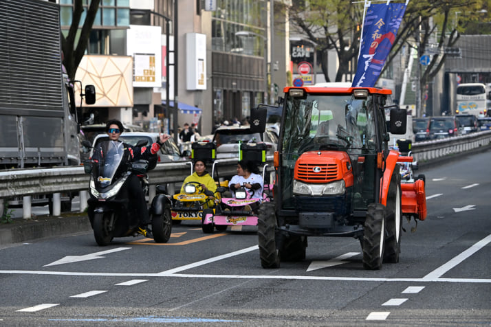 6枚目/13枚中 ポルシェの横をノロノロと…渋谷のど真ん中で「トラクターの大行進」が! 農家たちが訴えた厳しいリアル 「稲作農家の所得は時給わずか10円」 社会2025年04月05日 令和の百姓一揆 0