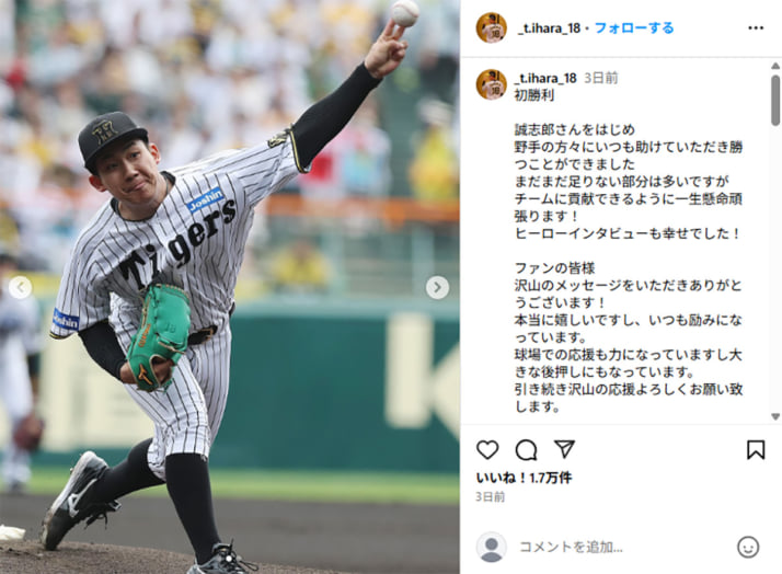 3枚目/4枚中 プロ野球開幕から約1カ月…“驚異的な数字”を残したルーキーは誰だ? 楽天、西武、阪神、ヤクルトなど「9選手」をピックアップ! 野球2025年04月27日 阪神の伊原陵人投手(本人Instagramより) 0