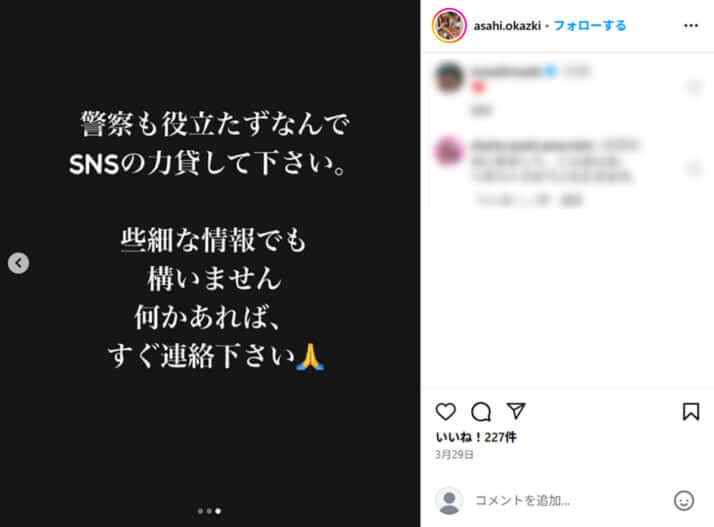 6枚目/7枚中 【川崎・住宅から白骨化遺体】神奈川県警の後手対応にOB刑事の苦言 なぜ4カ月を要したのか…真っ先に疑うべき元交際相手 社会2025年05月02日 被害者家族が開設したインスタグラムより 0