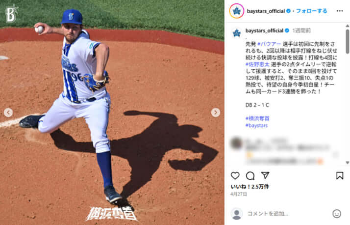 4枚目/4枚中 DeNA「バウアー」完全復調のカギを握る「登板間隔」と「女房役」の存在 2年前と何が変わったか 野球2025年05月09日 ねじ伏せる投球がサマになる(横浜DeNAベイスターズの公式Instagramより) 0