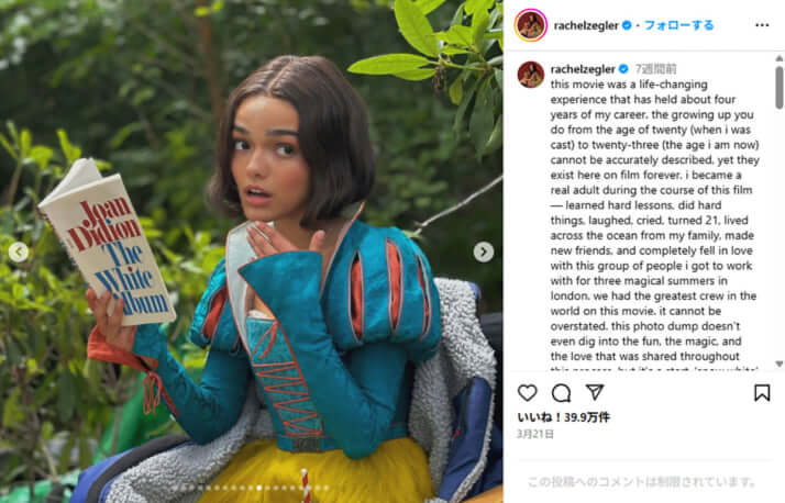 白雪姫を演じたレイチェル・ゼグラー(本人Instagramより)