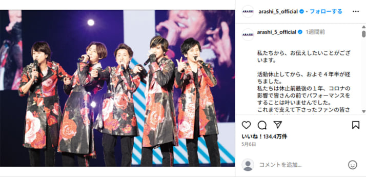 4枚目/5枚中 羽田の駐車場、富士山の山小屋で「予約枠転売ヤー」が増加 嵐ラストツアーでも?仕入れリスク無しの悪質手口とは 社会2025年05月16日 「来年の春頃に予定」という嵐の最後のコンサートツアー(嵐のオフィシャルInstagramより) 0