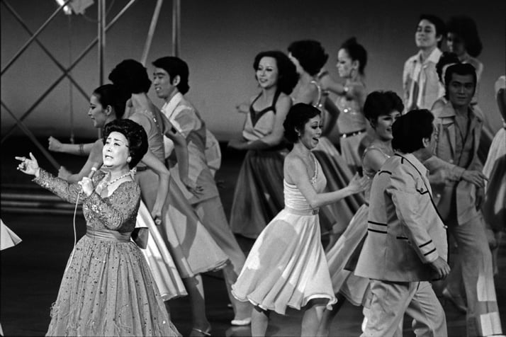 6枚目/6枚中 「美空ひばり」死去で米国工場まで稼働させたレコード会社、葬儀中継は“争奪戦”…ファンも「金に糸目はつけない」大フィーバーの裏側 芸能2025年06月24日 大勢のダンサーを背に従え熱唱(1979年撮影) 0