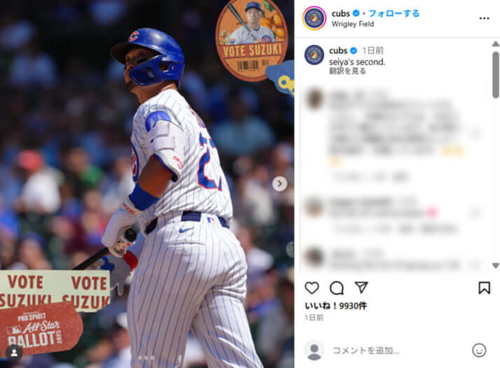 4枚目/4枚中 大谷「二刀流復帰」のウラで…ド軍が虎視眈々と狙う“投手ではない”カブスの大物選手とは? 野球2025年06月25日 今季は打撃好調の鈴木誠也(シカゴ・カブスの公式Instagramより) 0