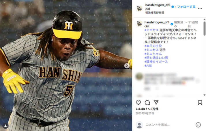 阪神タイガースの公式インスタグラムより