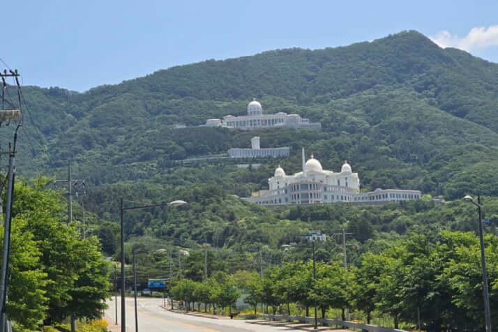 3枚目/9枚中 統一教会「韓国500億円聖地」に見る底なしの集金力 安倍元首相事件後も政権と癒着ベッタリ…教団崩壊はあるのか 韓国・北朝鮮2025年06月30日 京畿道加平にある「統一教会」の聖地。上から天正宮、教団系列の清心国際高校、天苑宮。2025年6月上旬に撮影(写真=ノ·ミンハ) 0