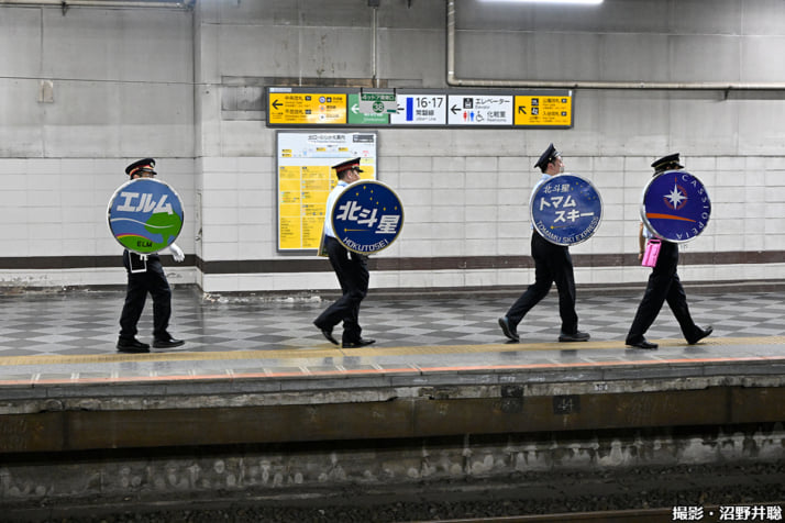 3枚目/11枚中 警官が出動、ロープで制限も… “撮り鉄”対策バッチリの「カシオペア」ラストランでちょっと意外な光景が 社会2025年07月12日 ラストランの日を迎えた寝台特急「カシオペア」を見送る駅員たち 0