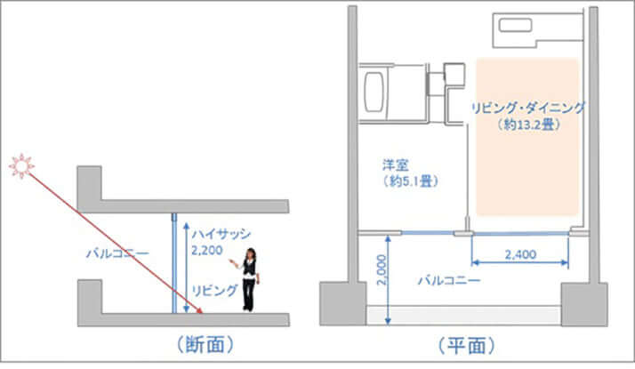 バルコニーの日差しへの影響を計算するためのモデル