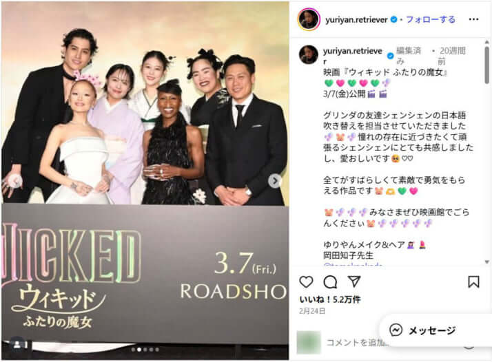 ゆりやんレトリィバァのインスタグラムより