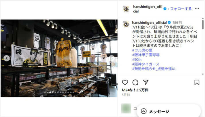 阪神タイガースの公式インスタグラムより