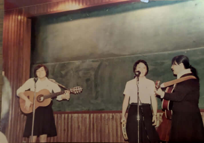 高校時代に汲んでいたバンド「サンデースプリング」のメンバー。左が丸山