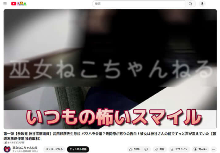 7枚目/11枚中 「神谷代表に詰められ、声は震えていた」 参政党元女性秘書を自殺に追い込んだ“パワハラ的言動” 告発した元スタッフには「訴訟で口封じ」か 政治2025年08月18日 YouTubeチャンネル「巫女ねこちゃんねる」より 0