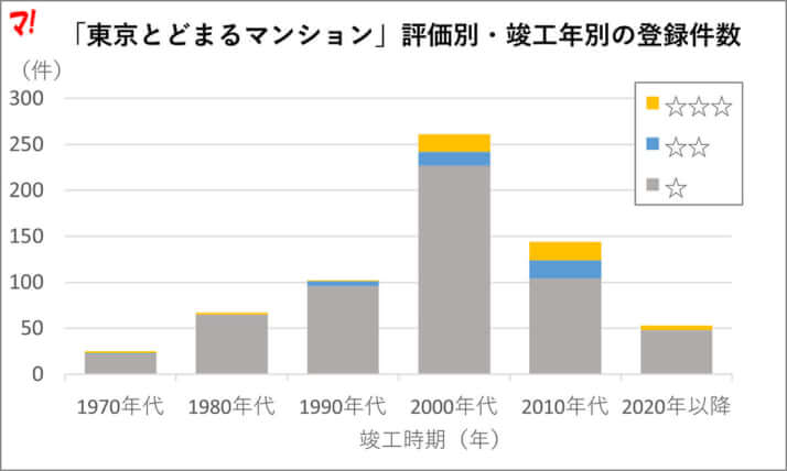 「東京とどまるマンション」評価別・竣工年別の登録件数
