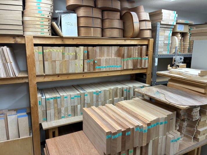 6枚目/6枚中 日本を代表するギターメーカー「ESP」が“職人養成学校”にこだわる理由 「ゼロから教えて、卒業までに25本のギターを作った学生も」 エンタメ2025年09月01日 学生が使用できる木材。在学中はこの木材をフル活用して、何本ギターを製作しても良いとのこと 0