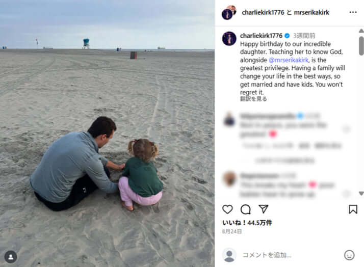 4枚目/6枚中 米国に激震「カーク氏射殺」 死で増した影響力が招く政情不安…「内戦さながらの衝突」「左派弾圧」よりも懸念すべき動きとは 国際2025年09月18日 チャーリー・カーク氏公式Instagram(@charliekirk1776)より 0