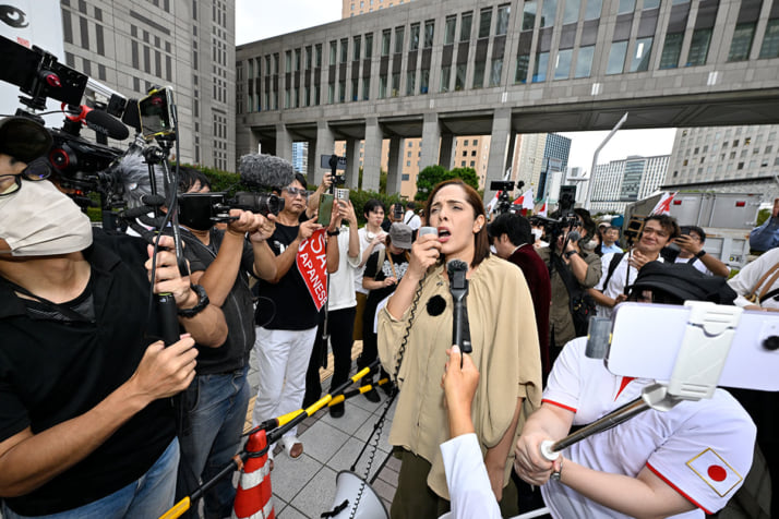 3枚目/13枚中 「首席で卒業? カイロ大学? うそをつくなぁ!」 怒号が飛び交う“異常事態”の中心にいた「49歳エジプト出身タレント」が訴えたこと 社会2025年09月21日 “エジプト合意”に反対するデモに参加したタレントのフィフィ 0