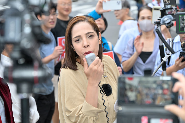 5枚目/13枚中 「首席で卒業? カイロ大学? うそをつくなぁ!」 怒号が飛び交う“異常事態”の中心にいた「49歳エジプト出身タレント」が訴えたこと 社会2025年09月21日 “エジプト合意”に反対するデモに参加したタレントのフィフィ 0