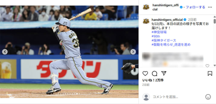 阪神タイガースの公式インスタグラムより