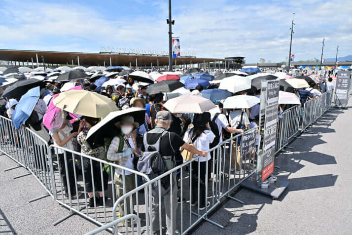 7枚目/10枚中 「ゲート前で野宿」「警備員を無視してダッシュ」「割り込みオバチャンも登場」 「大阪万博」エスカレートするAM5時の“予約争奪戦” 社会2025年10月10日 入場するのも大変(東ゲート前) 0