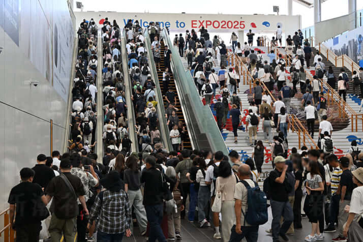 8枚目/10枚中 「ゲート前で野宿」「警備員を無視してダッシュ」「割り込みオバチャンも登場」 「大阪万博」エスカレートするAM5時の“予約争奪戦” 社会2025年10月10日 駅を出るのさえ大変(夢洲駅) 0