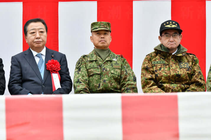 5枚目/5枚中 10人以上の部下を潰してついた異名は“ハカイダー” 陸上自衛隊「パワハラ陸将」が“幹部”教育機関トップに出世した“不可解人事”のワケ 社会2025年10月16日 野田佳彦衆院議員、河野太郎防衛大臣(当時)と並ぶ戒田氏 0