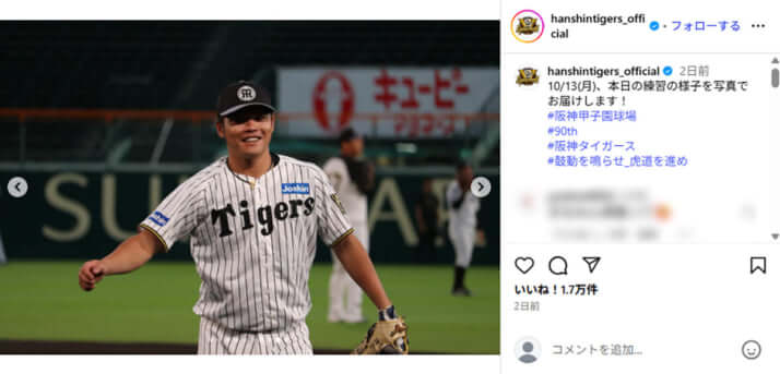 阪神タイガースの公式インスタグラムより