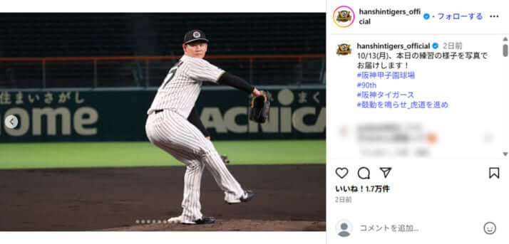 阪神タイガースの公式インスタグラムより