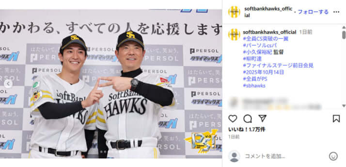 ソフトバンクホークスの公式インスタグラムより