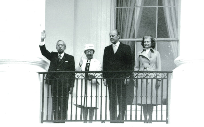 4枚目/8枚中 「ドアの外まで夫婦喧嘩の声が…」 「実録」が書かなかった「香淳皇后」の知られざるお姿 「美貌の女官にヤキモチ、昭和天皇を睨みつけられ…」 社会2025年10月19日 ホワイトハウスのバルコニーから、手を振って歓迎に応えられる昭和天皇と香淳皇后。右側はフォード大統領夫妻 0
