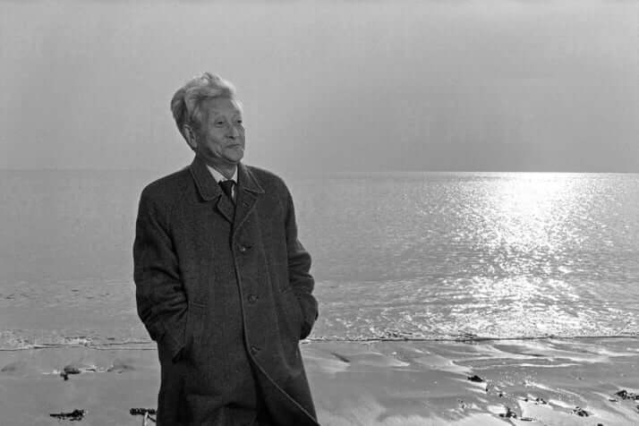 鎌倉の自宅近くの海岸を散歩する小林秀雄