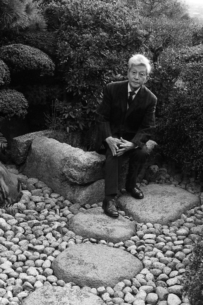 鎌倉の自宅庭でくつろぐ小林秀雄