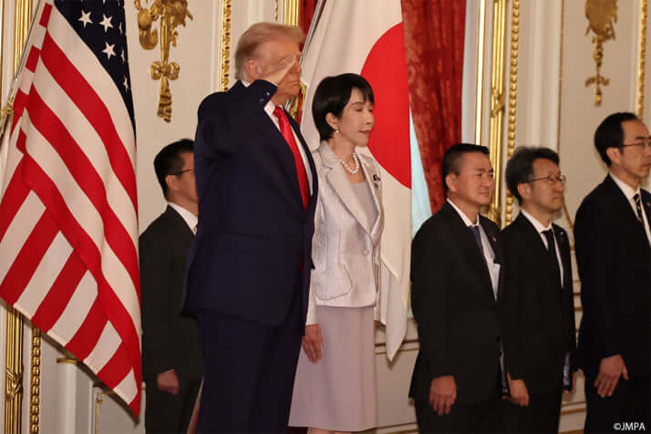 4枚目/6枚中 「トランプ氏との緊密関係」は「高市政権の安定」に寄与するか 米財務長官の発言に早くも浮かんだ「サナエノミクスへの牽制」 国際2025年10月31日 28日の迎賓館では米国国歌が演奏された 0