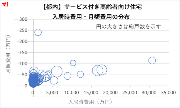 5枚目/6枚中 「分譲型シニアマンション」vs.「サ高住」どっちがベター? …の前に把握しておきたい意外な“落とし穴” 検索サイトでは分からない「老後の住まい」の“リアル”とは 社会2025年11月05日 【都内】サービス付き高齢者向け住宅 入居時費用・月額費用の分布 0